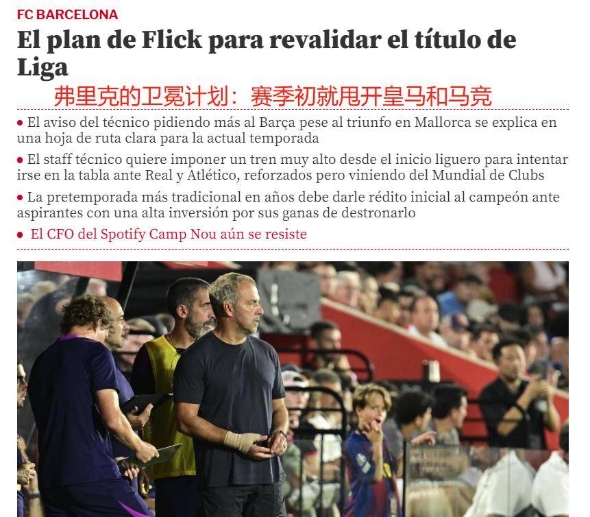 值得一提的是,巴萨在最近两次西甲夺冠的赛季(2022-23和2024-25),都以88分收官。首次是领先皇马10分,而最近一次领先则是4分。但弗里克认为,新赛季若想成功卫冕,单靠88分是远远不够的,90分才是最低需求。